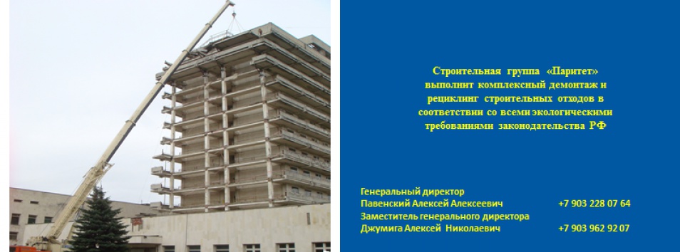 ООО СГ «Паритет», является профессионалом высокого класса в области комплексного промышленного демонтажа, рециклинга строительных отходов.